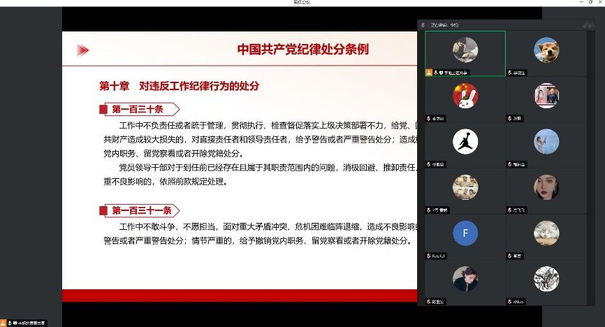 通过本次学习,支部党员对《中国共产党纪律处分条例》、习近平总书记关于党的纪律建设的重要论述等内容有了更加深刻的理解,进一步增强了支部党员的纪律意识,提高了支部党员的党性修养。