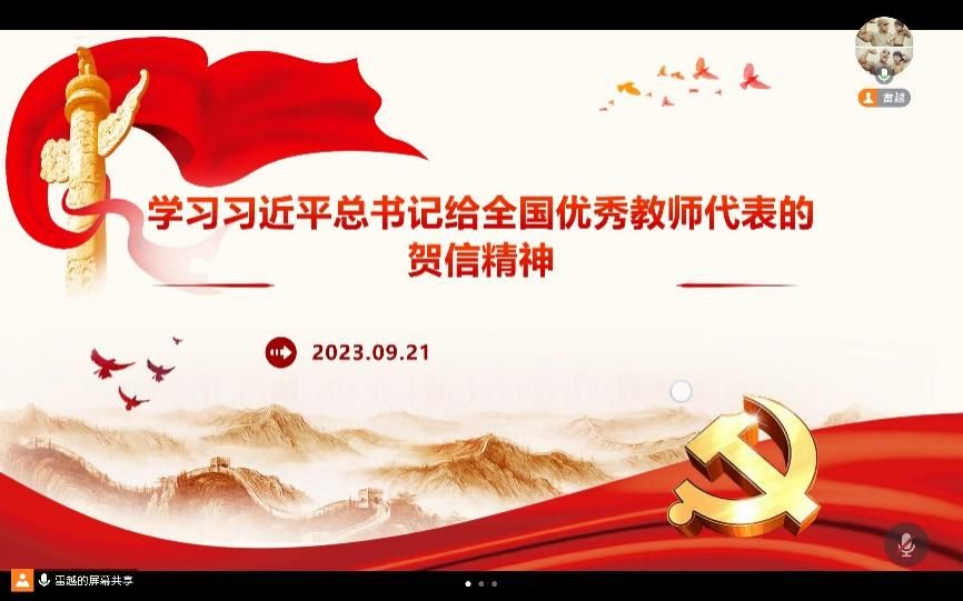 首先,雷越同志为支部成员朗诵了习近平总书记给全国优秀教师代表的贺信。习近平总书记在信中谈到了教育家精神:心有大我、至诚报国的理想信念,言为士则、行为世范的道德情操,启智润心、因材施教的育人智慧,勤学笃行、求是创新的躬耕态度,乐教爱生、甘于奉献的仁爱之心,胸怀天下、以文化人的弘道追求。习近平总书记强调,新征程上希望全国广大教师以教育家为榜样,大力弘扬教育家精神,牢记为党育人、为国育才的初心使命,树立“躬耕教坛、强国有我”的志向和抱负,自信自强、踔厉奋发,为强国建设、民族复兴伟业作出新的更大贡献。
