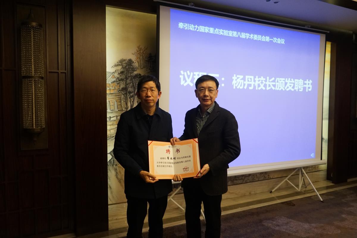 ,特别介绍了学校和实验室在轨道交通领域取得的成绩,并感谢与会专家一直以来对学校和实验室的大力支持。杨丹还向新一届实验室学术委员会委员颁发了聘书。