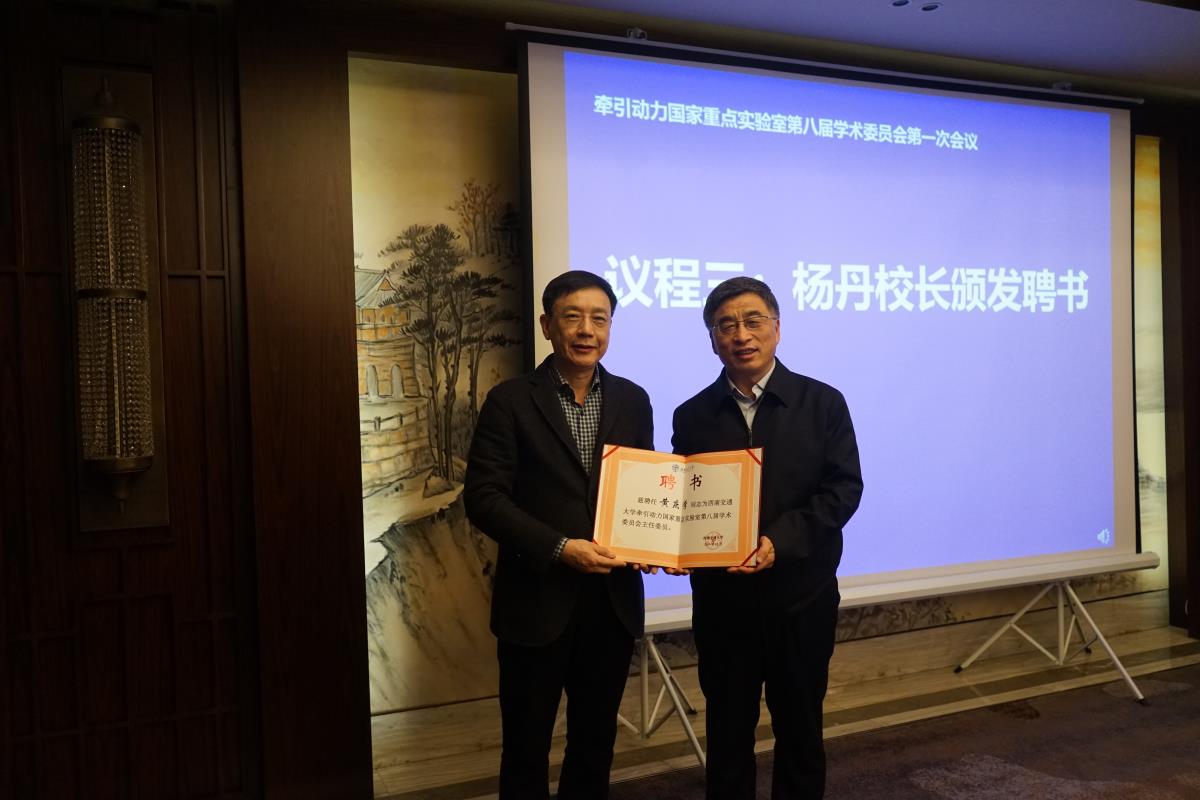 杨丹校长向黄庆学院士、翟婉明院士等分别颁发实验室学术委员会委员聘书