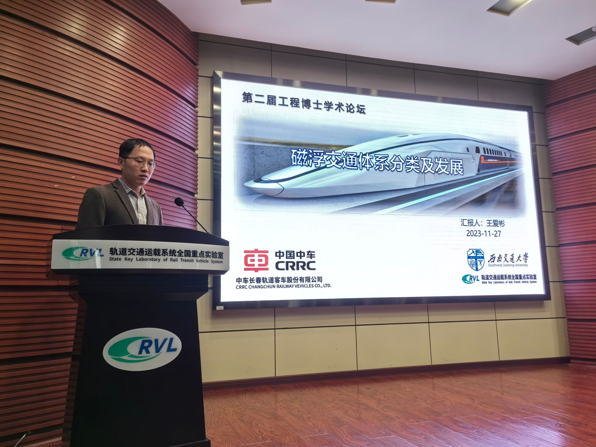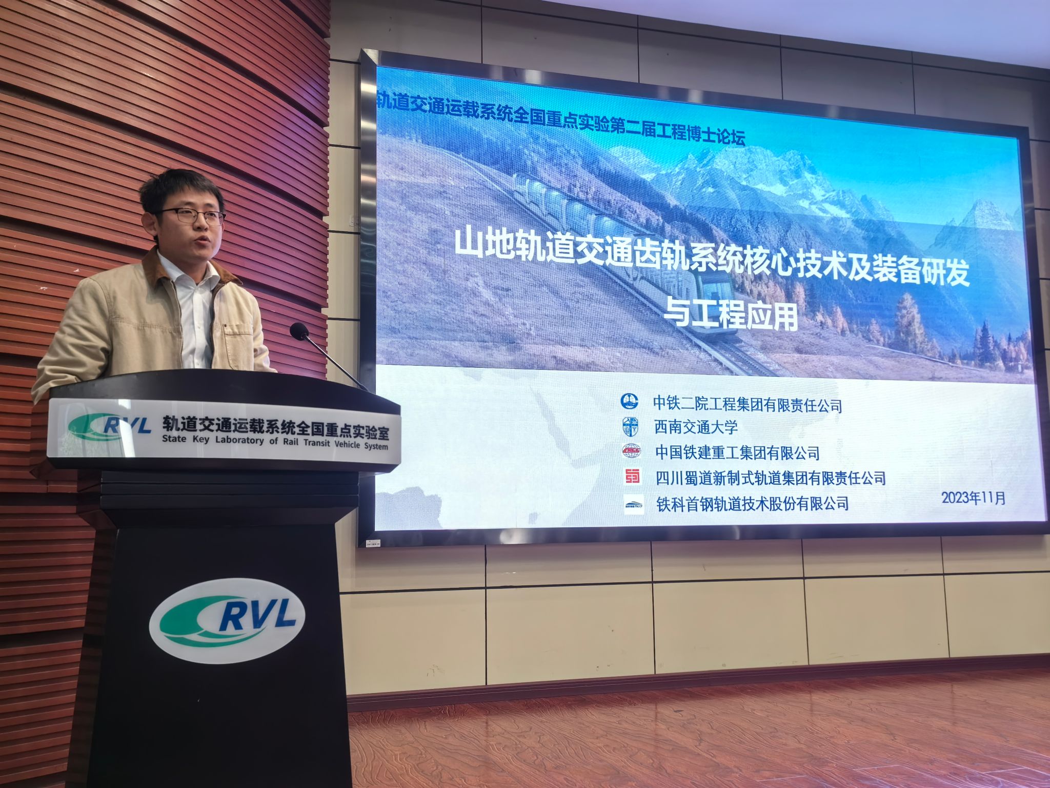 本次论坛邀请了实验室5位在读工程博士研究生做报告,分别是中铁二院陈志辉、中铁建工滕广武、中车株机陈哲、中车四方于晓杰、中车长客王爱彬。报告的题目分别为《山地轨道交通齿轨系统核心技术与装备研发及应用》、《极端复杂环境下的高速列车火灾风险分析》、《我国铁路重载牵引装备的技术实践与发展》、《城轨直线电机车辆节能降耗探讨》、《磁浮交通体系分类及发展》。5位工程博士研究生的导师翟婉明院士、张卫华教授、王开云研究员、马光同研究员、马卫华研究员分别对报告进行了点评,并对其后续工作的开展提出了建议。陈再刚、张继旺等老师也参加了论坛,广大师生就感兴趣的问题与报告人进行了交流。